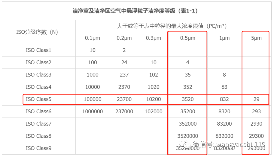 比如ISO5中0.5um指标每立方米3520,换算成每立方英尺即为100(1m3=35.2立方英尺),这就是常说的百级洁净区。