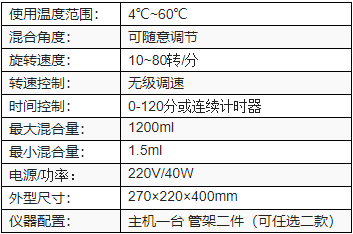 ●具备大容量同时混合及小样品旋转混合。设备参数