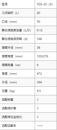 YDS-20(6)液氮罐产品概述:常规贮存运输型液氮容器是专门针对需要长期静态贮存生物样本或运送生物样本而设计的。它采用高强度铝合金制造,应用先进的抽空工艺和多层绝热技术,确保极低的液氮蒸发损失率,大大提高了产品的经济型。