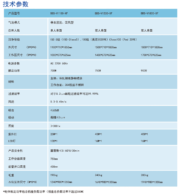 1、洁净台分类:垂直层流、回风型、单面操作;