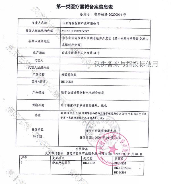 批准文号:鲁济械备20200064号