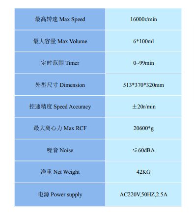 采用微机处理器控制转速、时间,TG-16W为数字显示,切换显示RCF值;