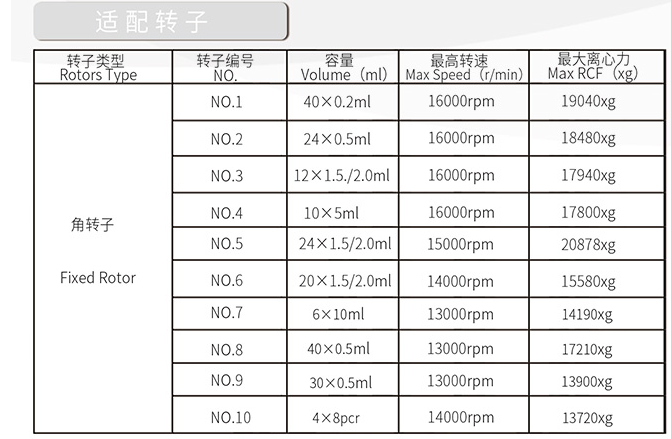可选转子规格:0.5ml/1.5mL/2mL/5mL/10mL