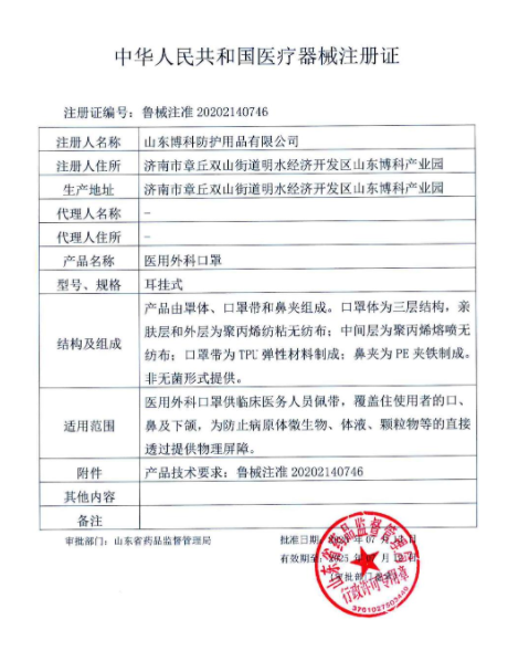所属类目:Ⅱ类 14-注输、护理和防护器械 批准文号:鲁械注准20202140746